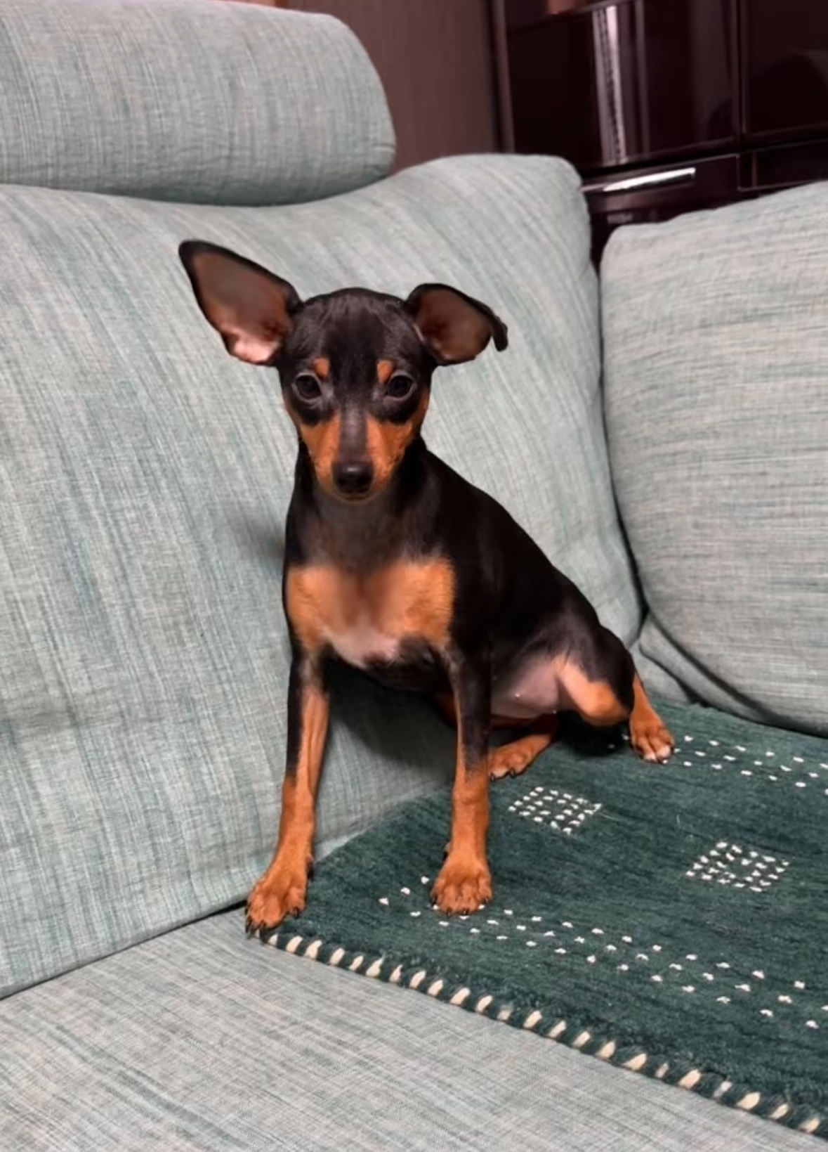 ミニピン しゅなちゃんママの三女 小さくちょうどいいサイズ 2025年8月14日2025年12月6日 犬種 ミニチュアピンシャー 販売状況 売約済み 性別 女の子(メス) 犬種ミニチュアピンシャー性別女の子(メス)誕生日2025年7月12日毛色ブラックタンワクチン代・健康診断書代6種ワクチン6500円 健康診断書2000円は別途かかります よろしくお願い申し上げます。お使いのブラウザは video タグに対応していません。子犬さん紹介当犬舎の子犬をご覧いただきまして、ありがとうございます。 すごい小さいかわいい子犬さんなので安心してお渡しができるサイズまで育ててあります。 12月4日の体重が3.1kgです。小さすぎず、大きすぎないちょうどいいサイズだと思います ☆超、超スーパープレミアムな子犬さんの ご紹介 ☆ しゅなちゃんの三女ちゃんです。 きれいな毛色でつやつやです。顔は周りの配色、まゆげの形や色がとても綺麗な毛並みです。 私たち家族でいっぱい愛情込めて育てていますので、すごく人懐っこく育っています。 すぐにトコトコ寄ってきます。 小さいので守ってあげたくなる可愛さですよ 優しいオーナー様お待ちしてます♪ ご家族の一員として大切にして下さる、優しいご家族様を募集致しております。 ぜひ、お気軽にお問合せ、ご見学にお越しください(^^)/ 素敵な飼い主様に出会える、良きご縁となります事を願っております。 この子犬さんへの問い合わせ
