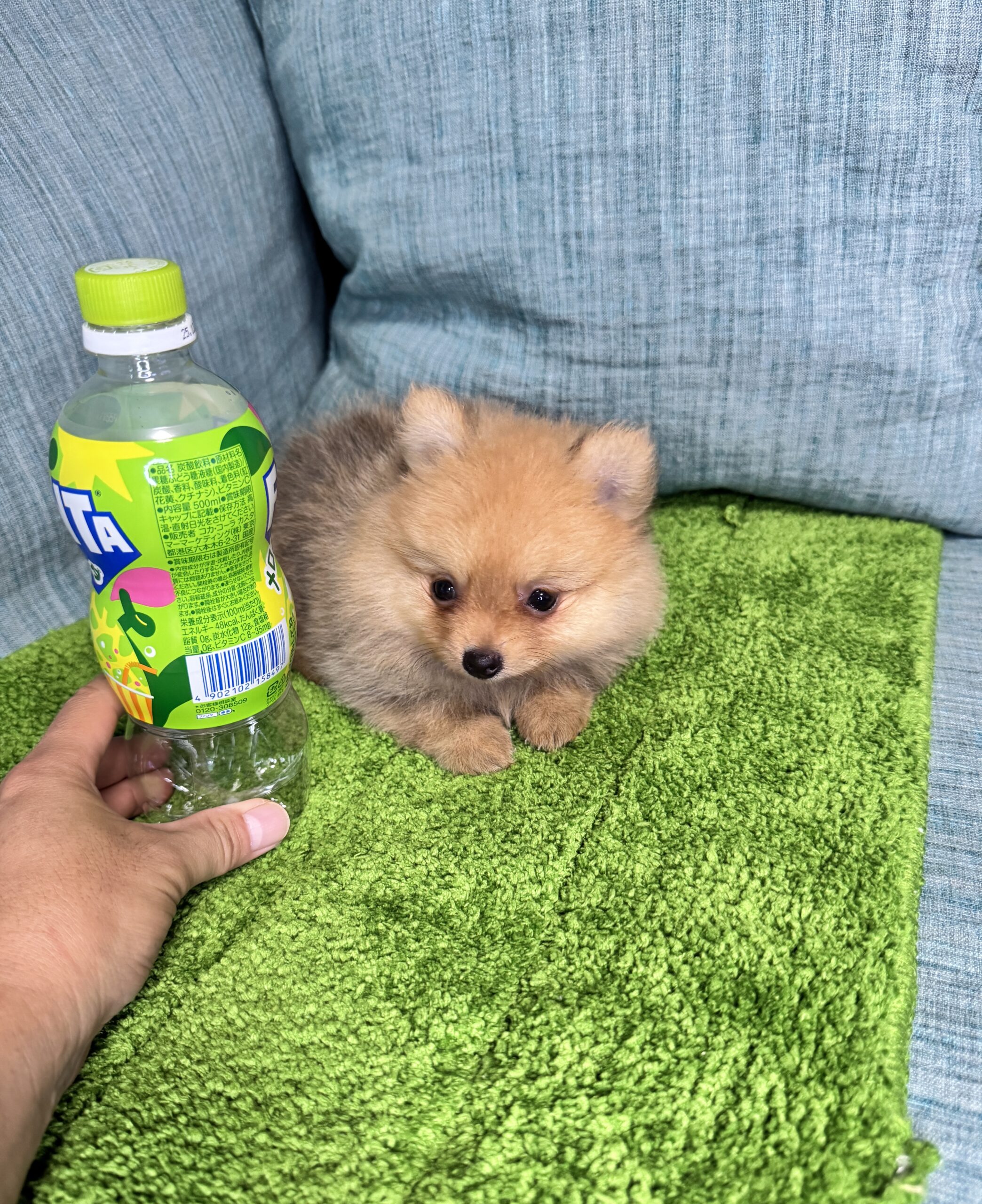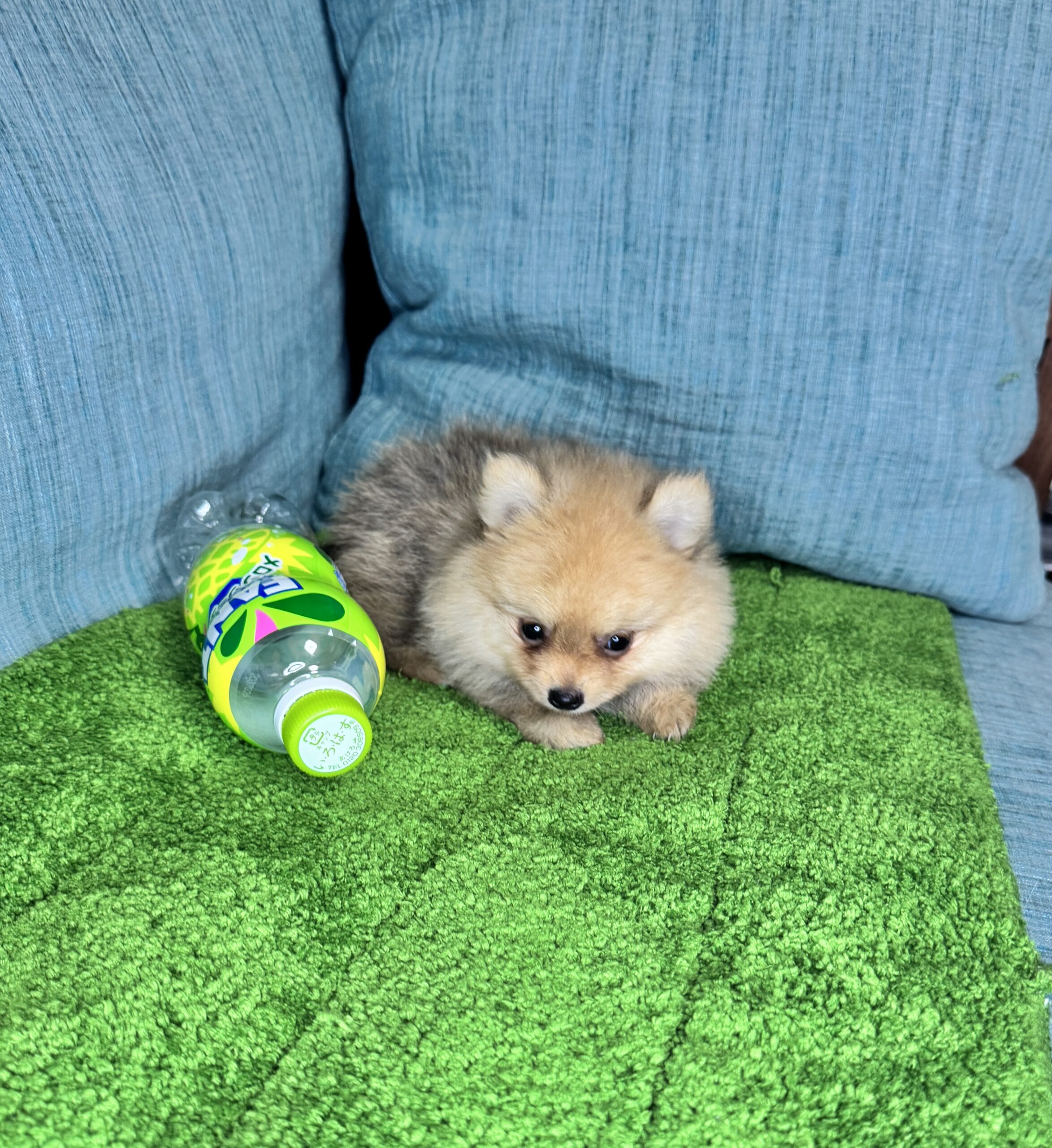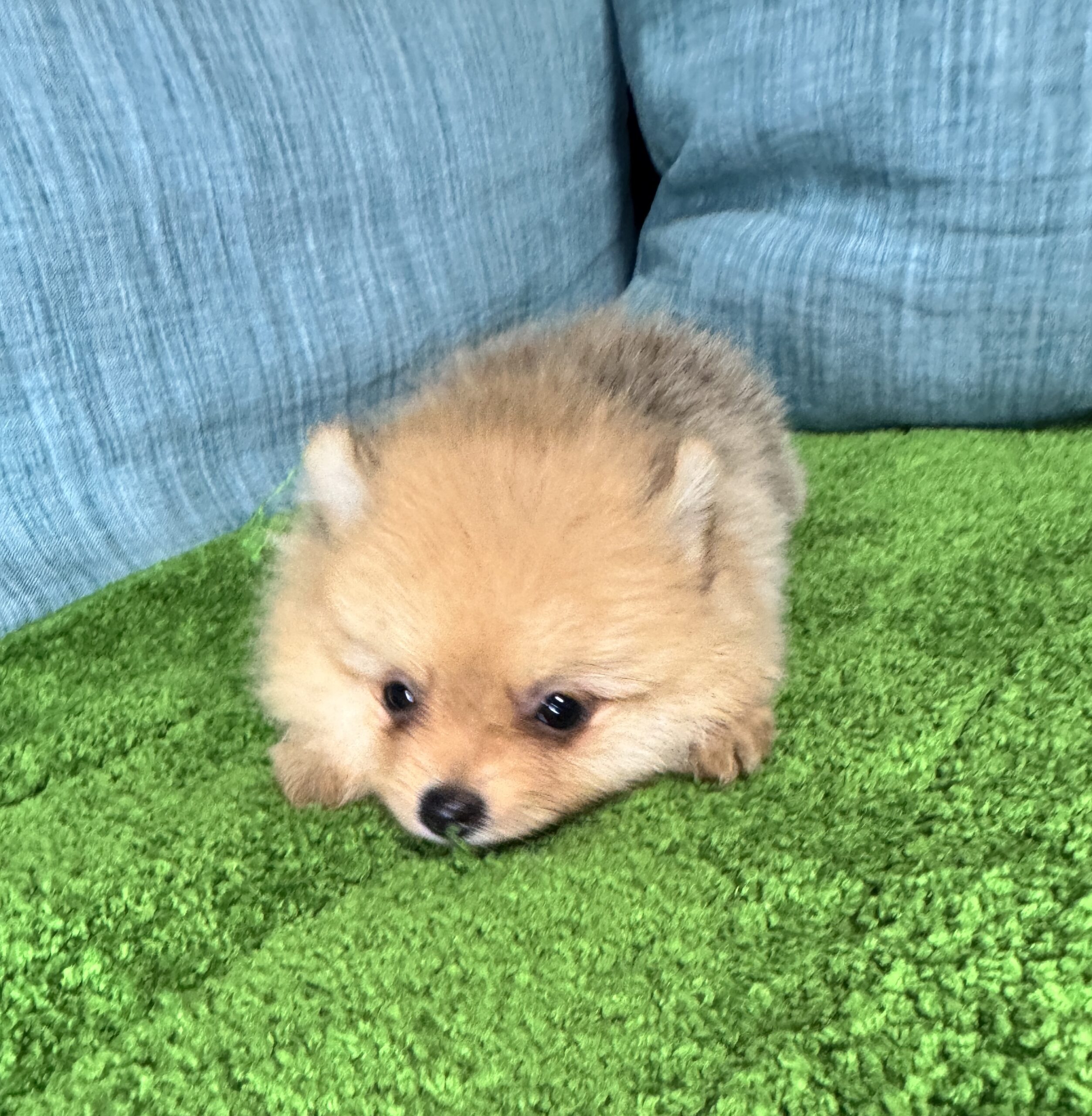 ポメラニアンは成長とともに、毛色が変わっていくことがありますが、将来的に綺麗な明るいオレンジになってくれると予想しています。お父さんみたいになると思います。