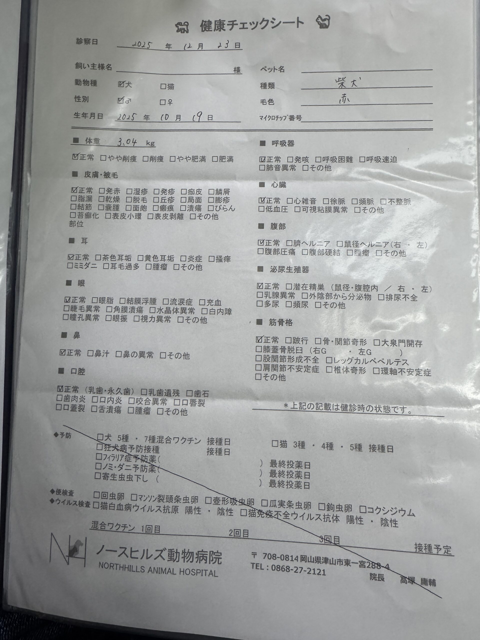 12月20日に健康診断受けてきました。結果は全て正常です。安心してお迎えいただけます☺️