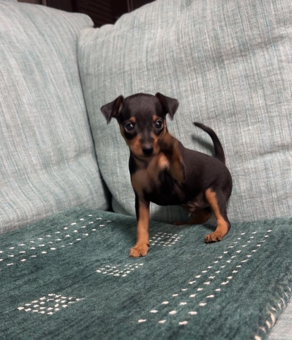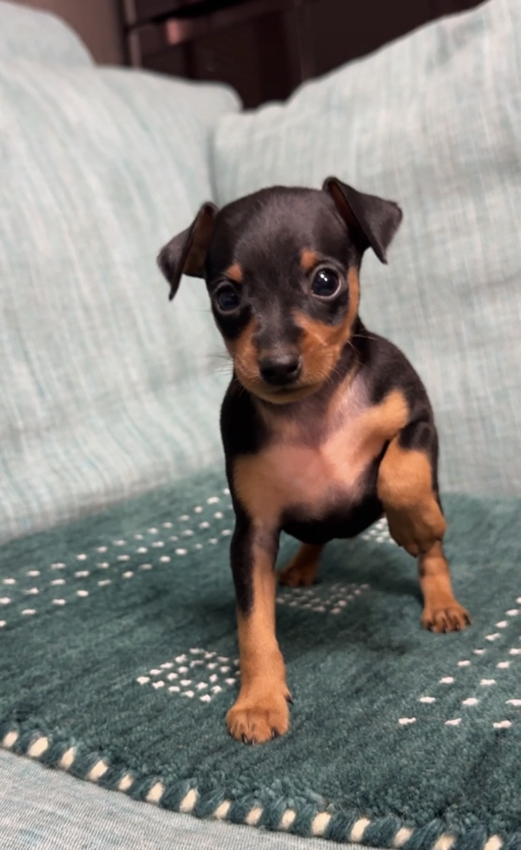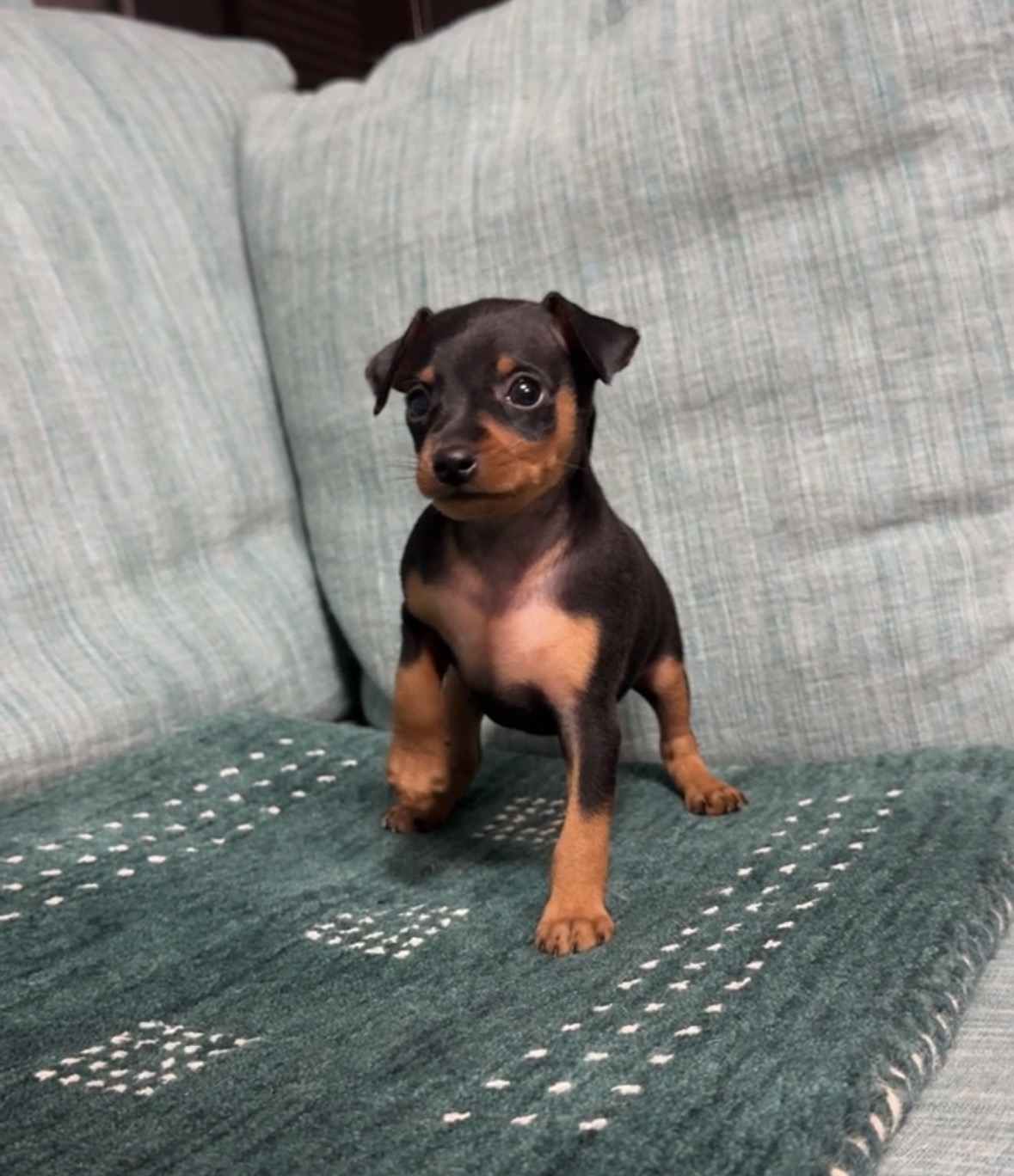 今までたくさんのミニピンさんが当犬舎に生まれましたが、ダントツ1位のかわいさです。もし売れなくてもうちの親犬さん候補にしますので、値下げの予定はごさいません。すみません🙇