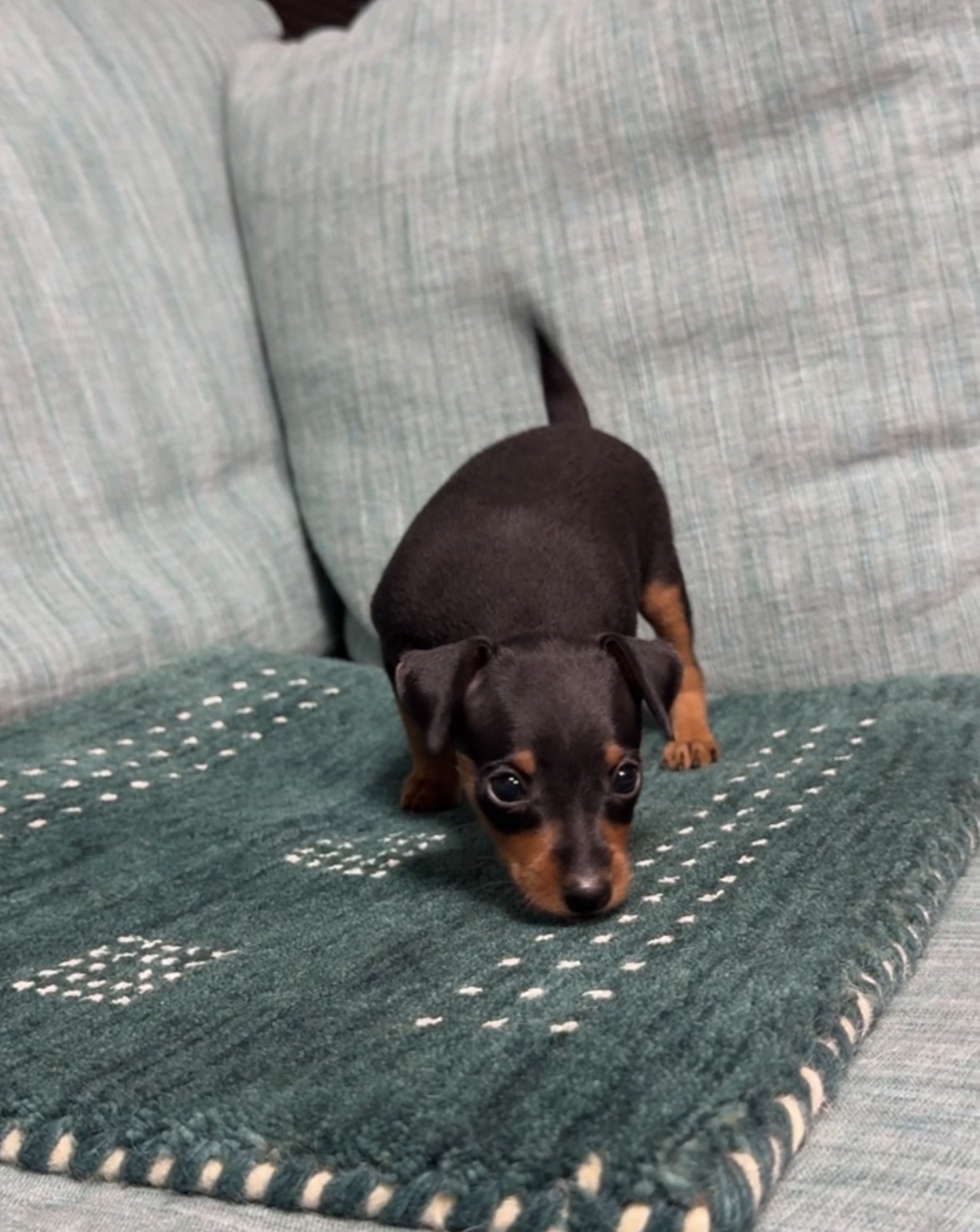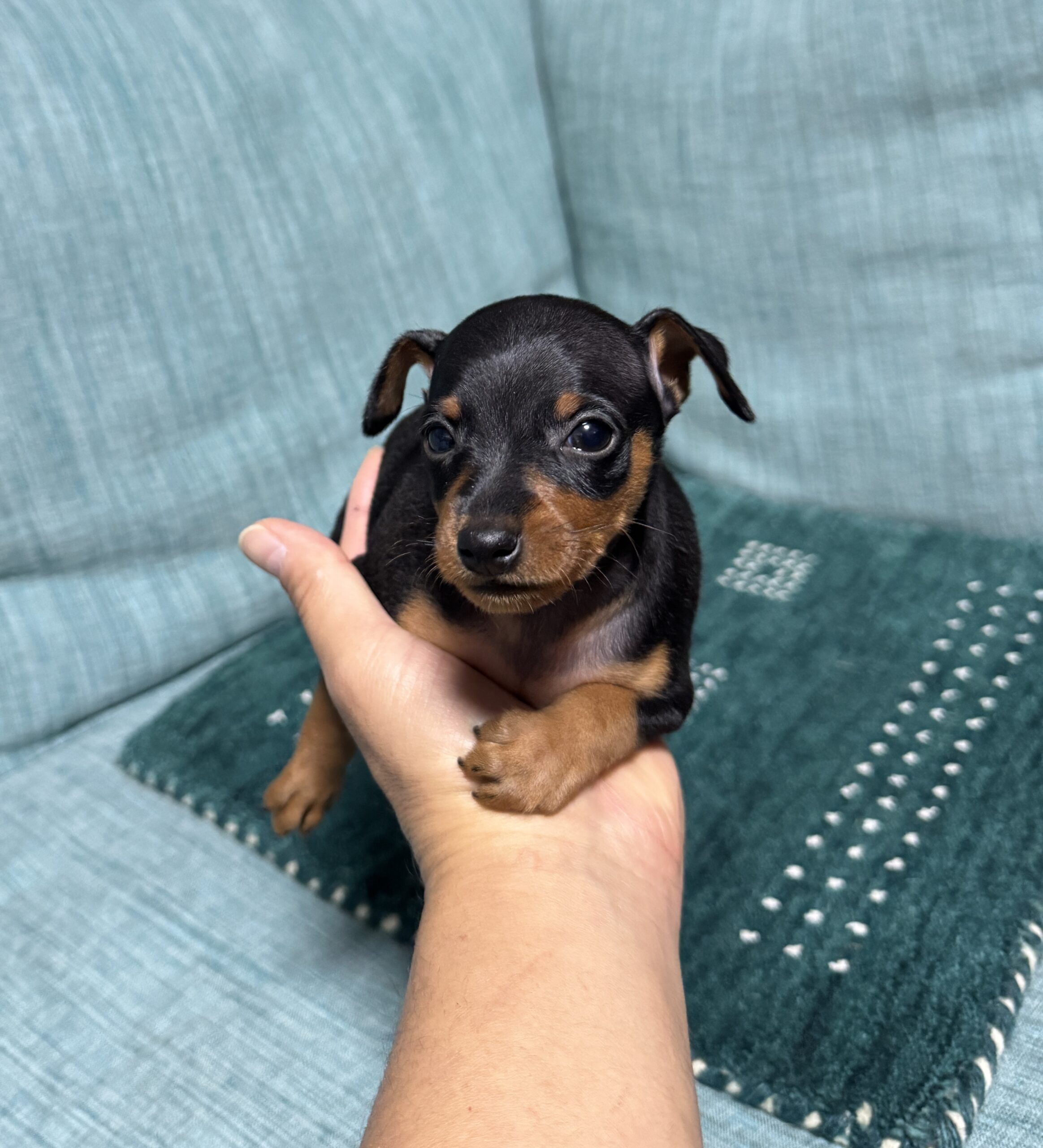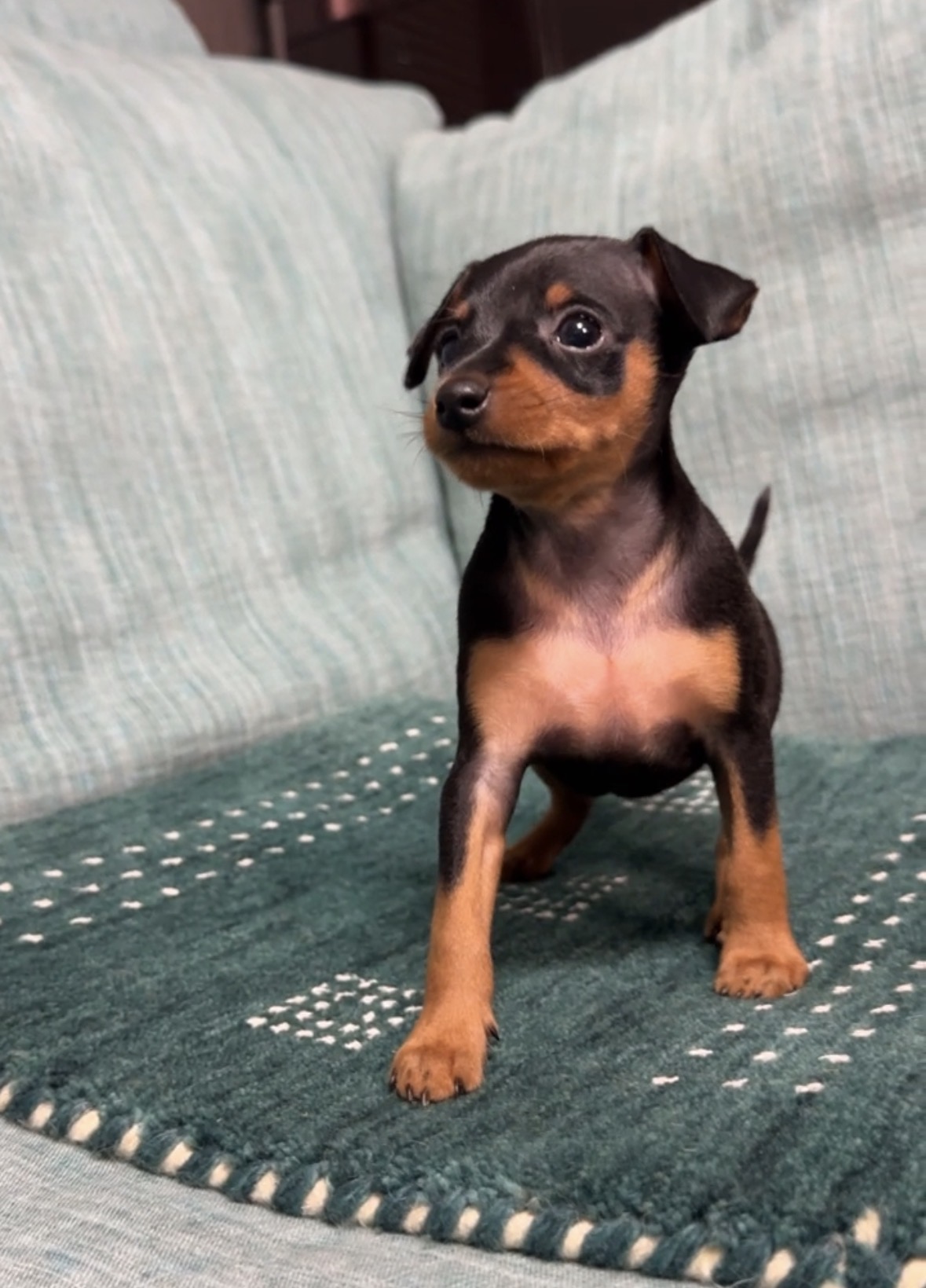 今までたくさんのミニピンさんが当犬舎に生まれましたが、ダントツ1位のかわいさです。もし売れなくてもうちの親犬さん候補にしますので、値下げの予定はごさいません。すみません🙇