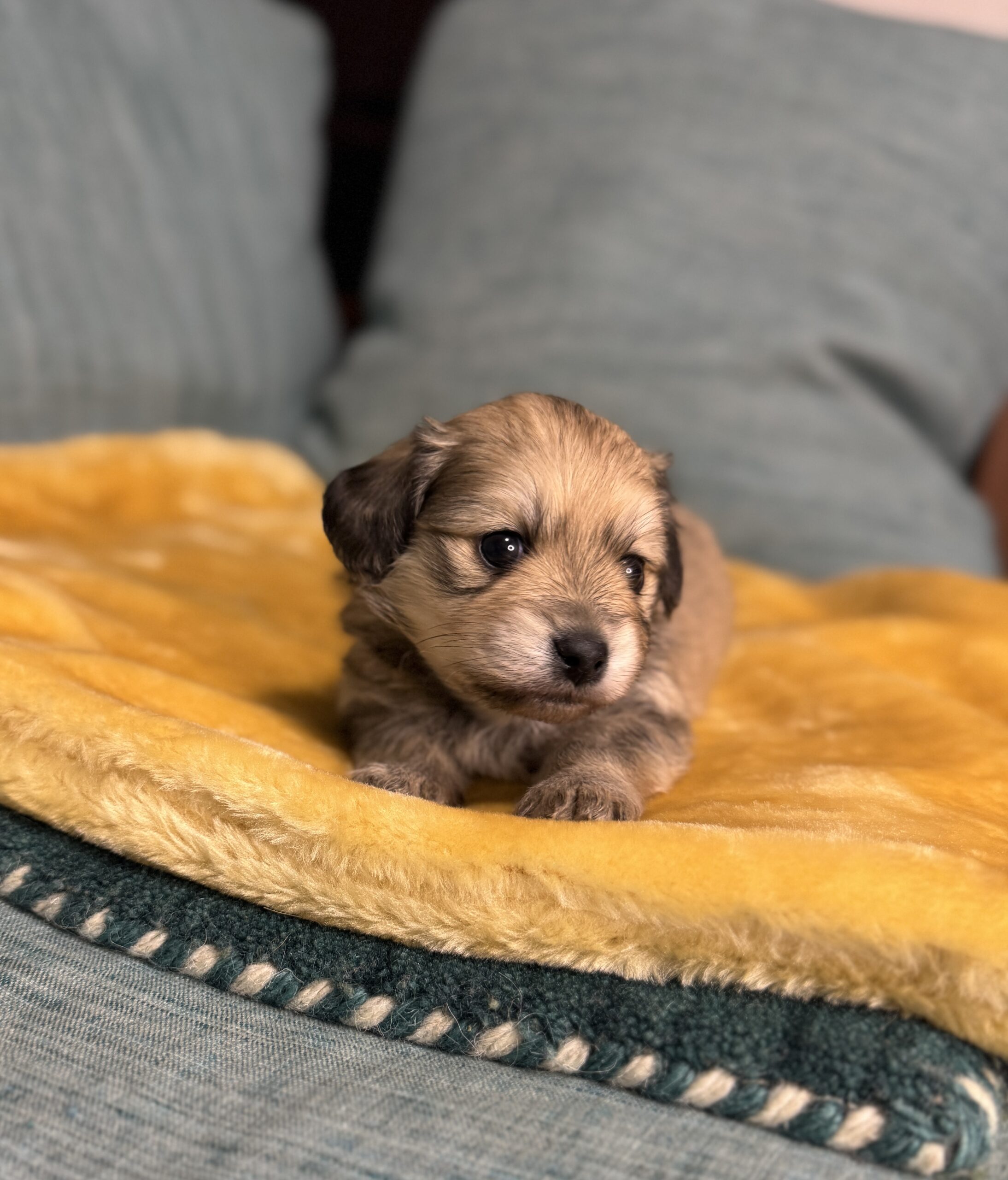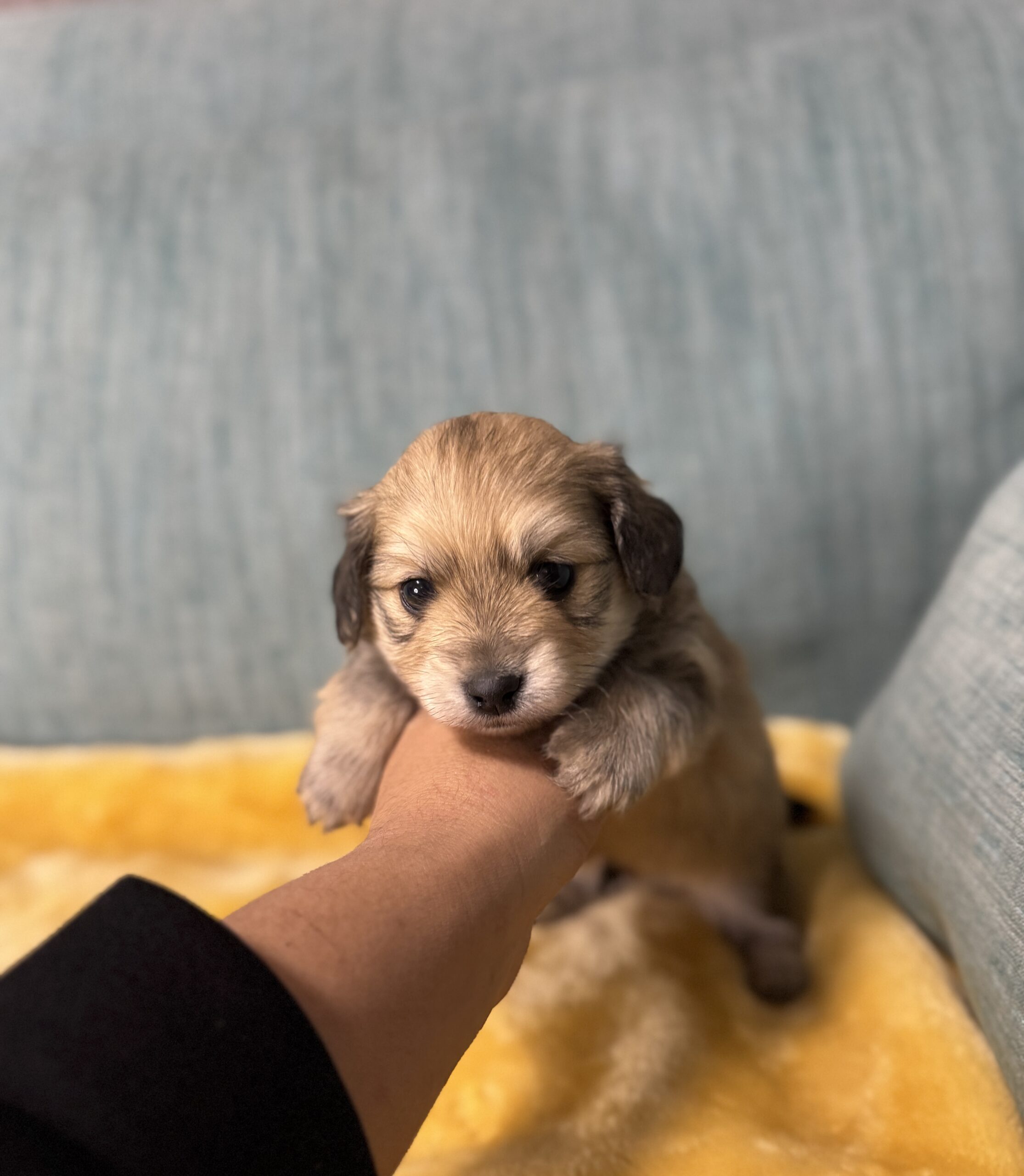 ポメックス ポメラニアン×カニンヘンダックス にーなママの長男くん 2026年2月23日2026年3月24日 ご成約済みの仔犬 犬種 ミックス犬 販売状況 売約済み 性別 男の子(オス) 犬種ミックス犬性別男の子(オス)誕生日2026年1月26日毛色ウルフセーブルワクチン代・健康診断書代ワクチン接種6500円 健康診断書2000円は別途お願いします🤲お使いのブラウザは video タグに対応していません。子犬さん紹介当犬舎の子犬さんを見ていただき、ありがとうございます。小さな犬舎ですが、家族みんなで大切に子犬さんを育てています。ぜひ家族の一員にお迎えいただきましたら幸いです。 ⭐︎プレミアムな子犬さん紹介⭐︎ ポメラニアンのモコくんパパとカニンヘンダックスのにーなちゃんまの子犬さんです。ママは小さめサイズのダックスさんです。 かっこいい特徴的な毛色の長男くんです。 しっぽをふりふり、いつもご機嫌さんです。遊んで、遊んでと手にしがみついて甘えてきます。 ほんと可愛い性格です。 カメラにも興味を持ち、怖がることもなく向かってくるところが男の子らしいです。 お父さん譲りの超爆毛の毛並みが良くて、ふわふわのモコモコで、背中の辺りは100円玉が埋もれてしまう程の毛量です。 抱っこすると羊毛フェルトを抱っこしているくらい暖かくてふあふあに幸せを感じます。 現在の体重は400gでちいかわサイズです。2月22日時点 小さくても元気な男の子です。 マイクロチップはもう少し大きくなってから装着いたします。装着後に末尾番号をお知らせいたします ほんと可愛いので一度見学してください。オンライン見学も可能です。 写真では伝わらない可愛さを見学して感じて欲しいです。 ご家族の一員として大切にして下さる、優しいご家族様を募集致しております。 ぜひ、お気軽にお問合せ、ご見学にお越しください(^^)/ ⭐︎親犬さん紹介⭐︎ 両親遺伝子検査クリアです。安心してお迎えいただけます♪ モコくんパパさん モコくんの名前の由来はモコモコの爆毛です。 本体は小さいのに爆毛のせいで立派に見えます。 性格はおとなしく、ウッドデッキで日向ぼっこをするのがとても好きです。 ほかの犬種のワンちゃんにも好かれるアイドル的存在です。 にーなちゃんママさん にーなちゃんは超かまってちゃんです。お客様がきたら誰よりも先に触ってと寄ってきますよ。 触ってもらえたらご満悦でお腹を撫でてってしてきます。 ほんとかわいい性格なんですよ。 うちのマスコット的なアイドルです。 素敵な飼い主様に出会える、良きご縁となります事を願っております。 この子犬さんへの問い合わせ