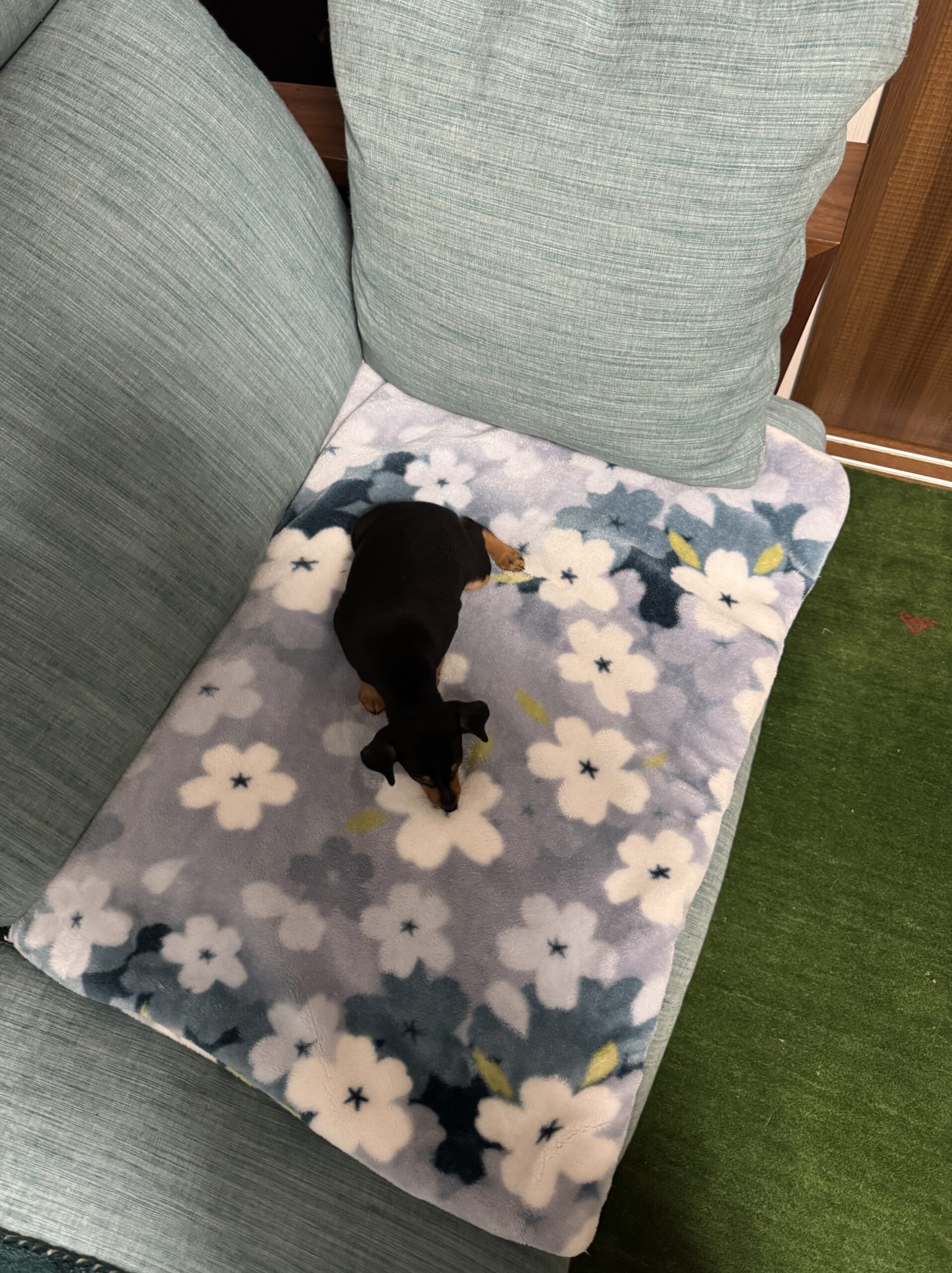 画像はアップなので子犬さんが、大きく見えますが、真上から撮った画像載せていますので、ソファの座面と比較して見てください。すごい小さいのが伝わると思います。