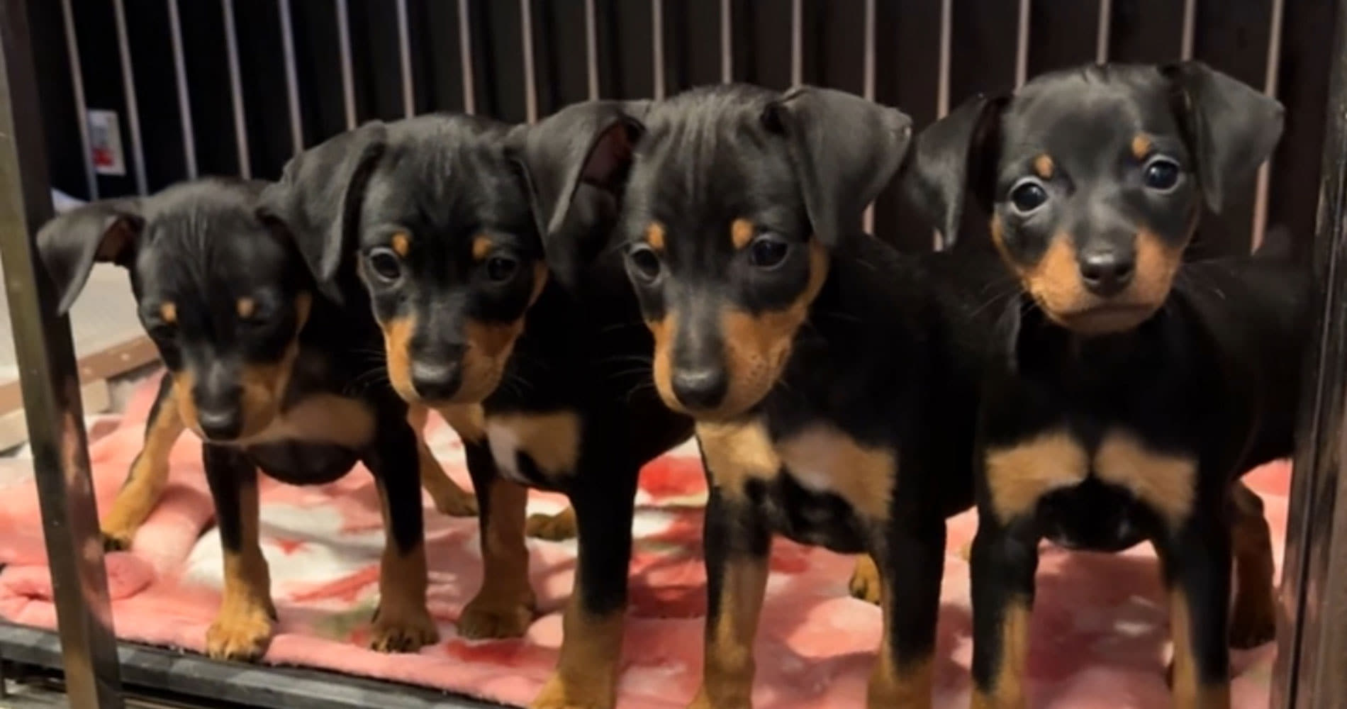 - ミニピンのももちゃんの子供たち7匹兄弟です。ブルータン男の子2匹、ブラックタン男の子3匹、ブラックタン女の子2匹元気に大きくなってます。1週間ちょっとでしっかり…